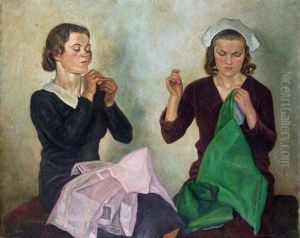 The Artist Wife Alice Sewing On A Sofa