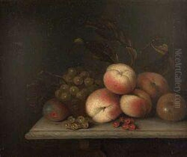 A Still Life Of Grapes, Peaches And Currants On A Marbleledge