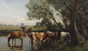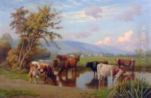 William Sidney Cooper continued the family tradition by focusing on landscapes, often emphasizing the lush, verdant scenes of Kent, affectionately known as the Garden of England. His paintings frequently depicted pastoral scenes, with a particular focus on cattle, reminiscent of his great-uncle's work, yet imbued with his own style and sensitivity towards nature.
