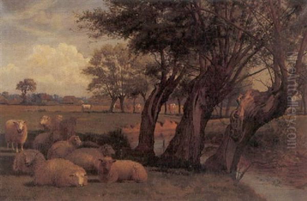 Cattle And Sheep Resting Near A River