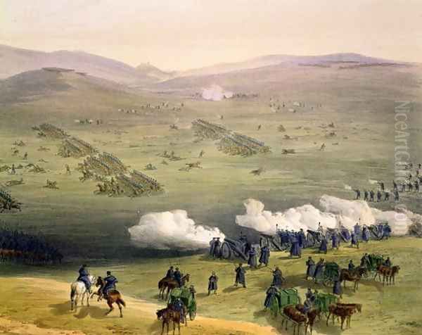 Bring the timeless beauty of William Simpson's Charge of the Light Cavalry Brigade, October 25th 1854, detail of artillery, from The Seat of War in the East, pub. by Paul and Dominic Colnaghi and Co., 1856 into your home with a handmade oil painting reproduction. Carefully recreated on canvas by skilled artists using traditional techniques, this piece captures the delicate brushwork, subtle light, and vibrant color of the original masterpiece. With museum-level quality and rich texture, it brings elegance and artistic depth to any space. Enjoy free shipping and make this masterpiece a part of your personal collection.
