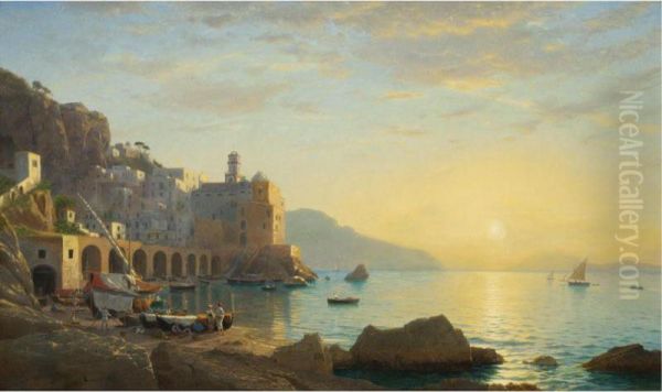 Bring the timeless beauty of William Stanley Haseltine's Sunset Along The Amalfi Coast into your home with a handmade oil painting reproduction. Carefully recreated on canvas by skilled artists using traditional techniques, this piece captures the delicate brushwork, subtle light, and vibrant color of the original masterpiece. With museum-level quality and rich texture, it brings elegance and artistic depth to any space. Enjoy free shipping and make this masterpiece a part of your personal collection.