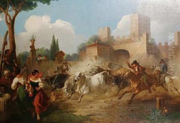 Butteri With Oxen Before A Roman Castle