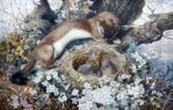 A Weasel And Bird's Nest In Spring