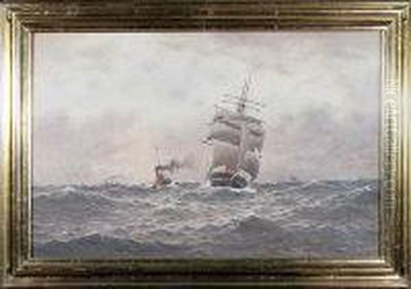 A North Shields Steam Paddle Tug And A Sailing Ship