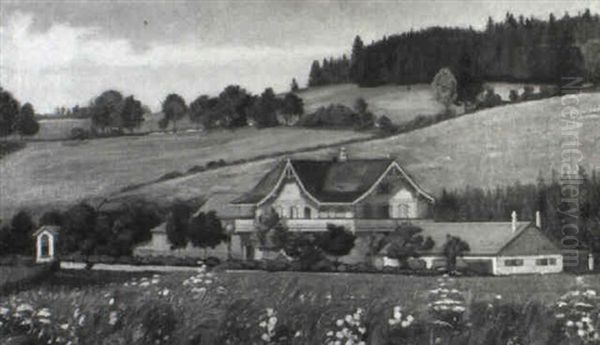 Bluhende Wiesenlandschaft Mit Herrschaftlichem Gehoft