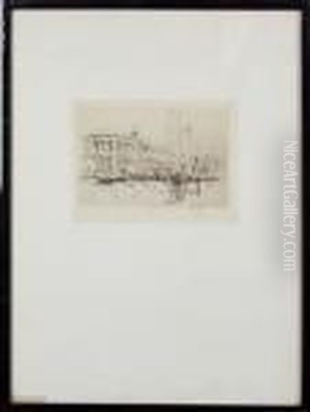 "gondolas Before The Library At St. Mark's, Venice" - Etching