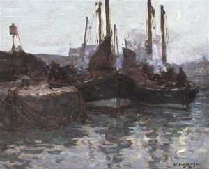 St. Ives Bridge, Huntingdon, With Fishermen And Boats In The Foreground