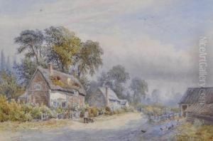 Mother And Child By A Thatched Cottage;shepherd With Sheep On A Lane, Signed, A Pair Of Watercolours