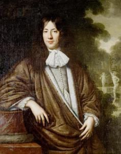 Portrait Of A Gentleman, Full-length, In A White Coat And Embroidered Waistcoat, Holding A Black Hat, Standing Before A Landscape