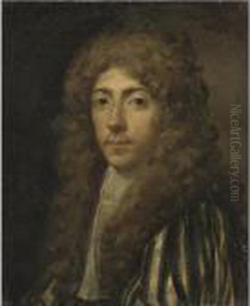 Portrait Of A Gentleman, Head And Shoulders, Wearing A Striped Doublet