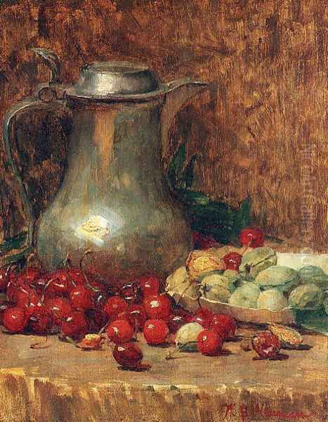 Still Life- Pewter Pitcher and Cherries 1890-1902