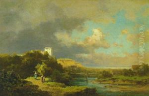 Sonntagliche Spazierganger In Einem Suddeutschen Flustal Mit Burg