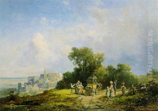Gesellschaft Bei Einer Kutsche Auf Einem Feldweg