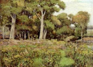 After studying in Chicago, Irvine moved to New York in 1903, where he joined the Holbein Studios and was influenced by the burgeoning American Impressionist movement. His style evolved to emphasize en plein air painting—a practice of painting outdoor scenes on location, which was central to the Impressionist ethos. Irvine became a master of capturing the transient effects of light and atmosphere in his work, and he often explored the New England landscape, particularly the area around Old Lyme, Connecticut, which was a hub for American Impressionism.