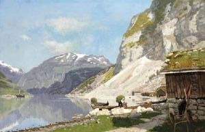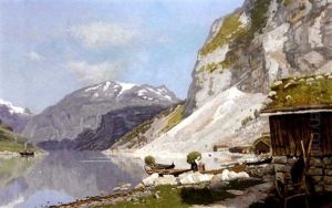 A Mother And Her Children On The Edge Of A Norwegian Fjord