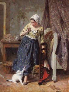 Sleeping woman with a cat