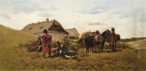 In addition to his military paintings, Szerner also created a number of genre scenes that reflected the daily life of Polish society during the 19th century. These works often showed peasants and soldiers in various settings, sometimes highlighting the social and cultural divides of the period.