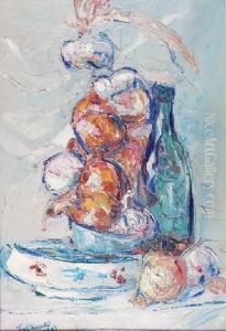 Martwa Natura Z Owocami I Bukietem Kwiatow
