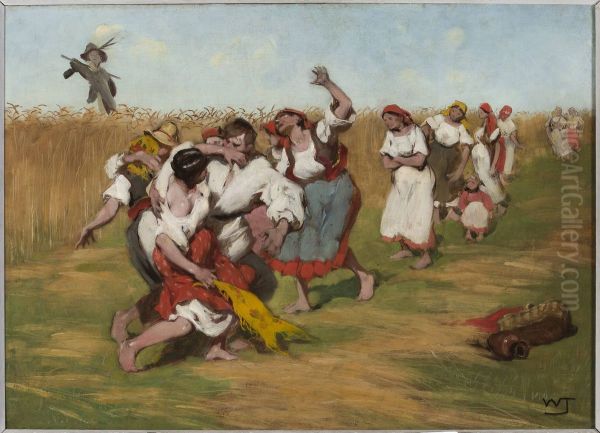 Harvest Oil Painting by Wlodzimierz Tetmajer