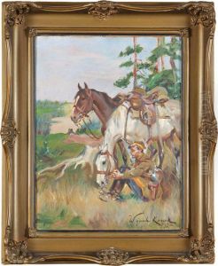 Odpoczynek Ulana Oil Painting by Wojciech Von Kossak