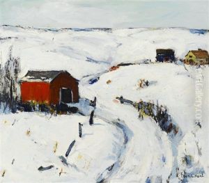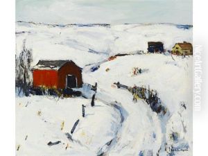 Paysage D'hiver Avec Deux Groupes De Personnages Et Une Grange Pres D'un Etang
