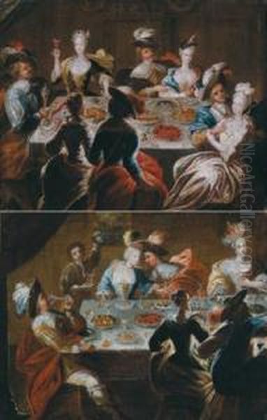 Due Scene Di Un Banchetto Illuminato Da Luce Di Candele