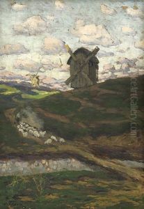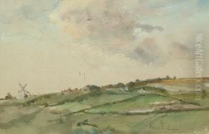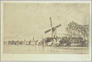 Flusslandschaft Mit Windmuhle