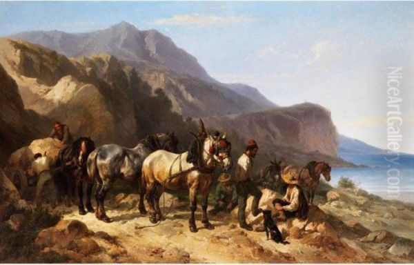 Pferdegespann Mit Steinarbeitern Auf Einem Hohenweg Uber Der Kuste