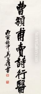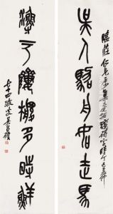 Calligraphy Couplet In Stone Drum Script