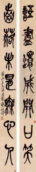 Calligraphy Couplet Oil Painting by Wu Changshuo