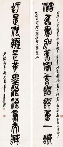 Calligraphy Couplet Oil Painting by Wu Changshuo