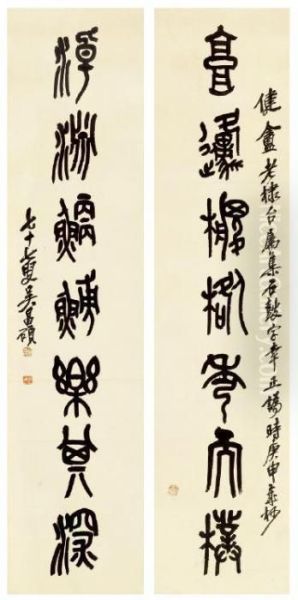 Bring the timeless beauty of Wu Changshuo's Calligraphy Couplet into your home with a handmade oil painting reproduction. Carefully recreated on canvas by skilled artists using traditional techniques, this piece captures the delicate brushwork, subtle light, and vibrant color of the original masterpiece. With museum-level quality and rich texture, it brings elegance and artistic depth to any space. Enjoy free shipping and make this masterpiece a part of your personal collection.