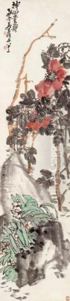 Peony And Narcissus Oil Painting by Wu Changshuo