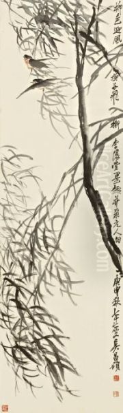 Bring the timeless beauty of Wu Changshuo's Swallows Under The Willows into your home with a handmade oil painting reproduction. Carefully recreated on canvas by skilled artists using traditional techniques, this piece captures the delicate brushwork, subtle light, and vibrant color of the original masterpiece. With museum-level quality and rich texture, it brings elegance and artistic depth to any space. Enjoy free shipping and make this masterpiece a part of your personal collection.