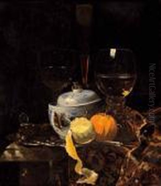 "stillleben Mit Glasern Und Deckeldose" Ol Auf Kupferplatte