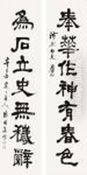 Calligraphy Couplet In Clerical Script Oil Painting by Xiao Sun