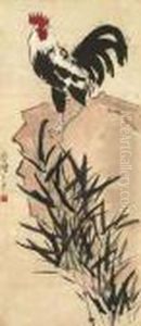 Rooster Under Bamboo