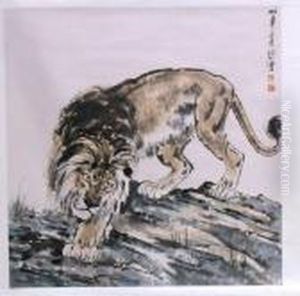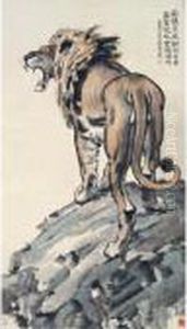 Artist's Self-portrait-cavorting Lions