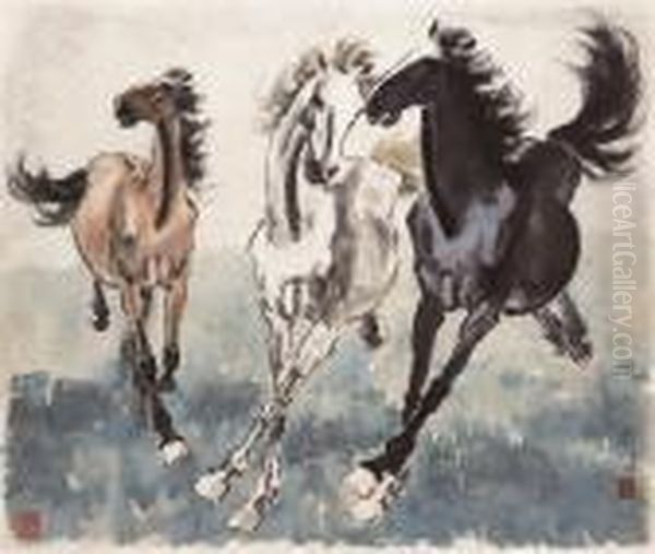 Bring the timeless beauty of Xu Beihong's The Three Stallions into your home with a handmade oil painting reproduction. Carefully recreated on canvas by skilled artists using traditional techniques, this piece captures the delicate brushwork, subtle light, and vibrant color of the original masterpiece. With museum-level quality and rich texture, it brings elegance and artistic depth to any space. Enjoy free shipping and make this masterpiece a part of your personal collection.
