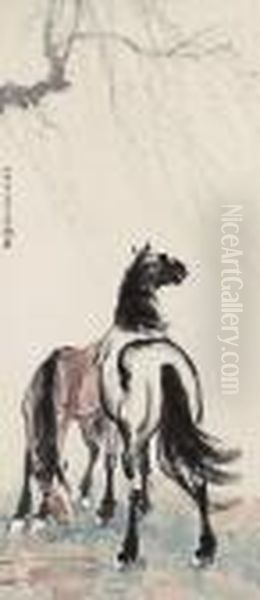 Bring the timeless beauty of Xu Beihong's Two Horses Under Willow into your home with a handmade oil painting reproduction. Carefully recreated on canvas by skilled artists using traditional techniques, this piece captures the delicate brushwork, subtle light, and vibrant color of the original masterpiece. With museum-level quality and rich texture, it brings elegance and artistic depth to any space. Enjoy free shipping and make this masterpiece a part of your personal collection.