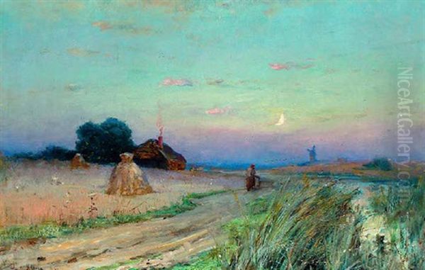 Eine Reisigsammlerin Kehrt Bei Mondschein Und Anbrechender Nacht In Ihre Hutte Zuruck