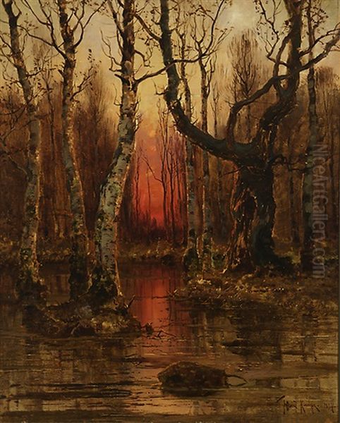 Sunset Oil Painting by Yuliy Yulevich (Julius) Klever