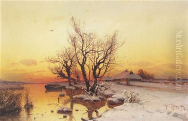 Winter Landscape Oil Painting by Yuliy Yulevich (Julius) Klever