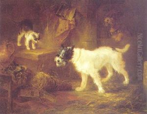Affe Und Hund Beim Wurfelspiel Auf Einer Trommel