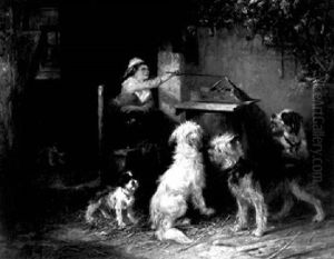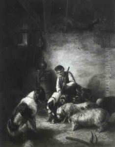 Nach Der Jagd: Zwei Jager, Bursche Und Hunde Vor Dem Am Boden Liegenden, Erlegten Niederwild