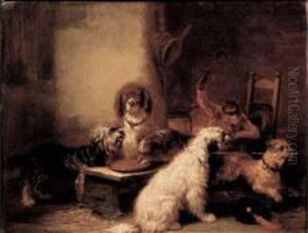 Reunion De Chiens Et Singe
