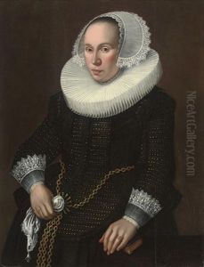 Portrait Of A Woman In A Black Dress With White Ruff And Ruby Necklace