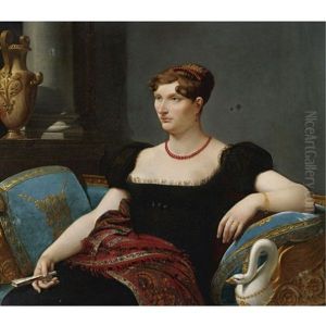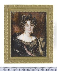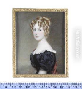 Portrait Of A Lady, Half-length, In A Black Dress With White Lace Trim, Holding A Pocket Watch In Her Left Hand