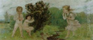 Delve into a rich tapestry of childhood scenes, showcasing children engaged in a myriad of playful activities. Discover lively outdoor games, quiet moments of introspection, the joy of shared secrets, and the vibrant world of make-believe. Our collection features works that span different artistic eras, including the detailed realism of the Dutch Golden Age, the charming sentimentality of the Victorian era, and the luminous brushstrokes of Impressionist masters who often immortalized their own families at play. These paintings offer a fascinating glimpse into historical childhoods, reflecting changing societal norms while celebrating the unchanging spirit of youth.
